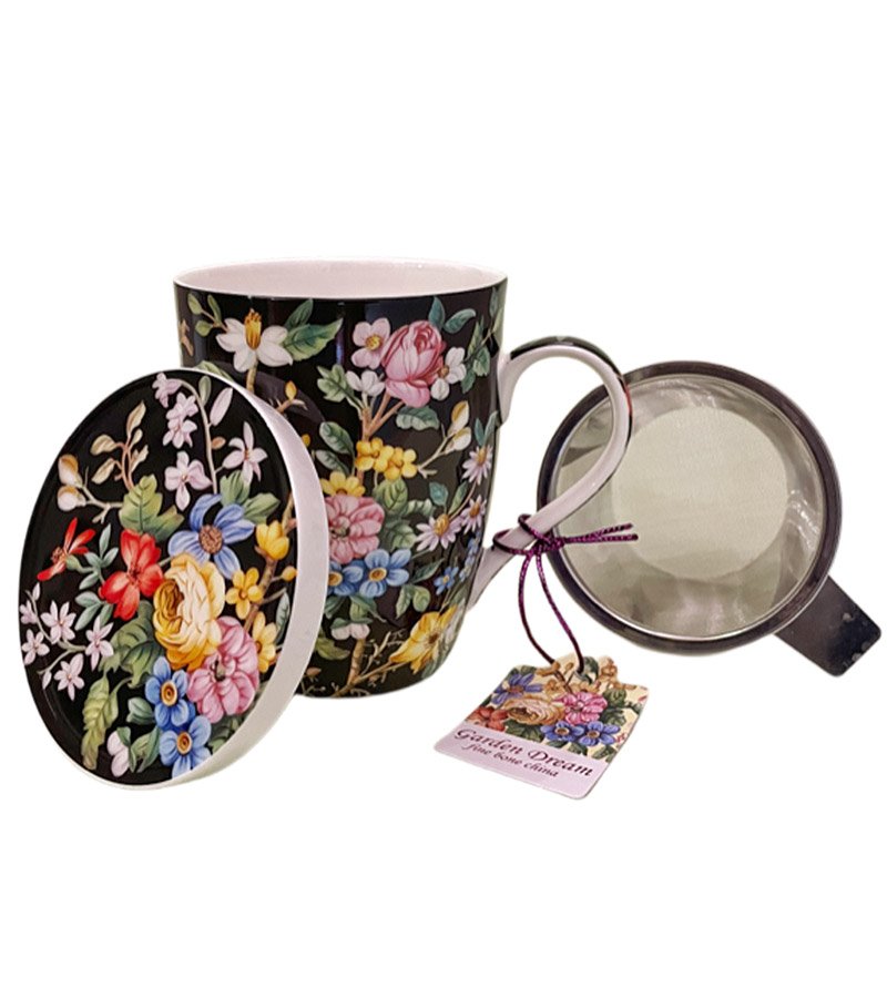 DUO set 2 šolje sa tabacicem 250ml ENGLISH ROSES BLACK
