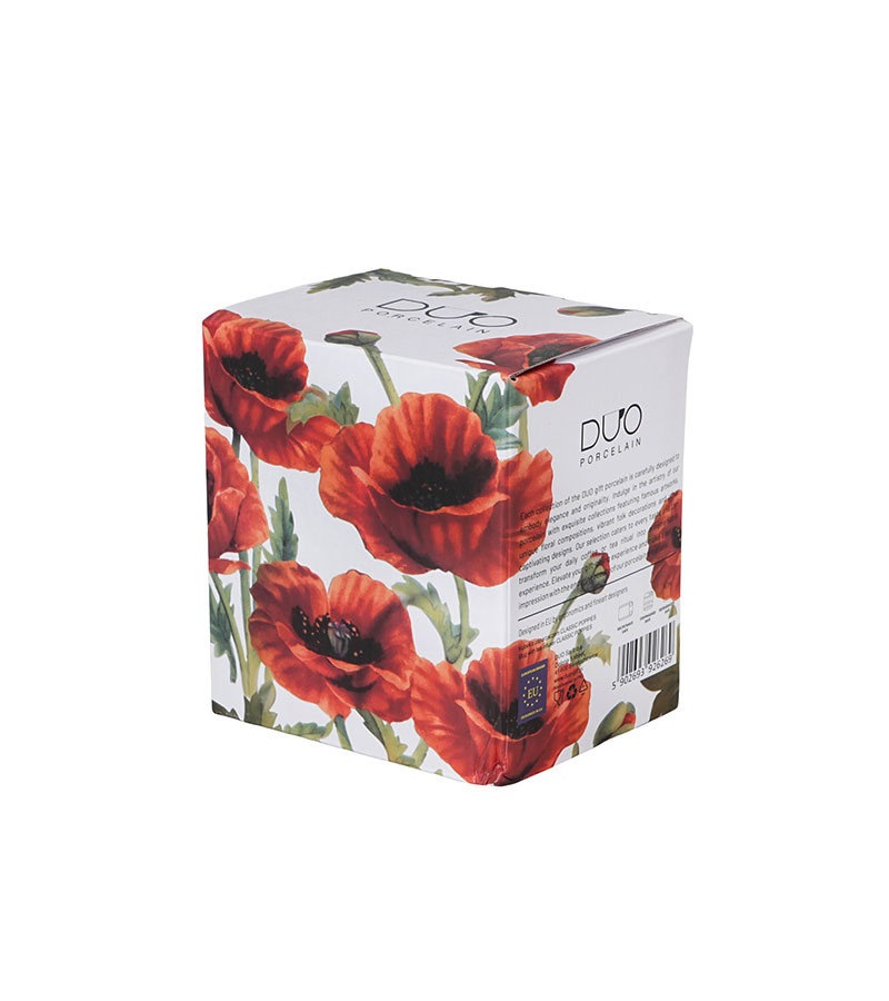 Klasična šolja za čaj CLASSIC POPPIES, izrađena je od New Bone China porculana, koji se odlikuje prirodnom kremasto bijelom bojom s nježnim sjajem i izuzetnom čvrstoćom i izdržljivošću. Savršena za pripremu vašeg omiljenog čaja i aromatičnog bilja. Linija sadrži motiv ogromnih, izražajnih makova u intenzivnoj crvenoj boji, koji simboliziraju strast, ljubav i hrabrost. Svaki cvijet je pedantno oslikan, s pažnjom posvećenom detaljima i prirodnim nijansama crvene koje kontrastiraju na savršeno bijeloj pozadini. Upakovana u ukrasnu kutiju s istim motivom, savršena je ideja za jedinstven poklon.