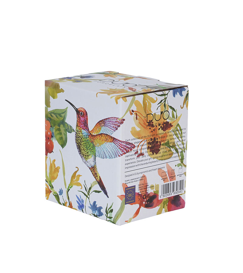 Klasična šolja LINNEA sa inox infuzerom, dio serije Flowers Classic, izrađena je od New Bone China porculana, kojeg karakterizira elegantna i prirodna kremasto-bijela boja s nježnim sjajem, kao i izuzetna izdržljivost. Savršena za pripremu vašeg omiljenog čaja i aromatičnog bilja. Linija je ukrašena motivom oslikanog cvijeća u živim bojama i šarmantnim kolibrićem. Upakovana u dekorativnu kutiju s istim motivom, savršena je ideja za jedinstven poklon.