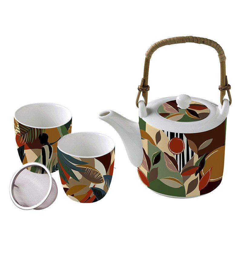 Porculanski set koji se sastoji od čajnika sa bambus ručkom 600ml i dvije šoljice. Sve upakovano u ukrasnu kutiju istog motiva.