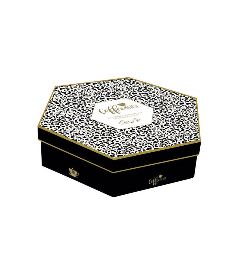 Crno bijeli komplet od 6 espresso šolja sa porculanskim tanjirima. Svaka šoljica espressa kapaciteta 100 ml. Set je efektno upakovan u poklon u raznobojnom pakovanju. Šoljice i tanjirići su prekrasan porculanski set potpisan logotipom talijanske marke Easy Life.